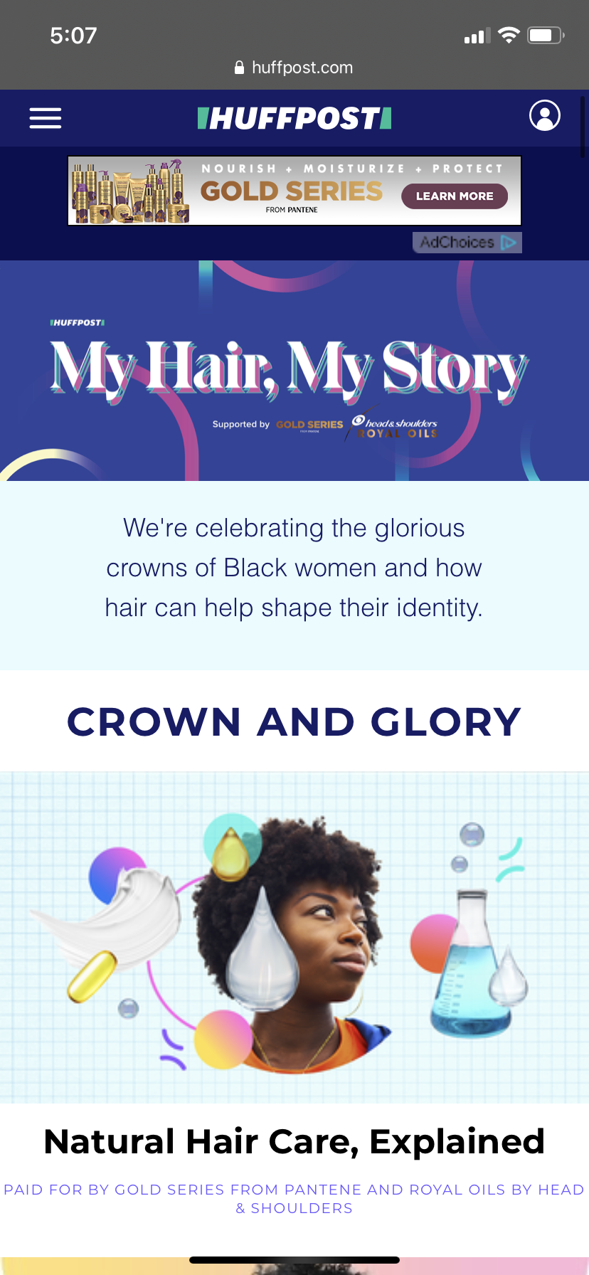 As the Senior Program Manager at Verizon Media, I led the award-winning "My Hair My Story" campaign for P&G, promoting the Gold Series from Pantene and Royal Oils by Head & Shoulders. This multifaceted initiative celebrated Black hair heritage and identity through impactful storytelling and strategic activations.